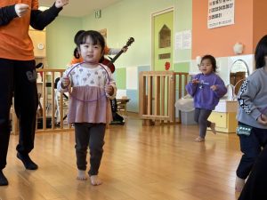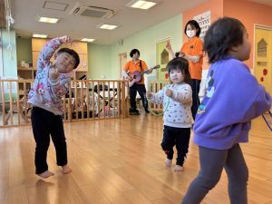 最初はギター🎸の音に合わせて保育士が名前を聞いていきます。