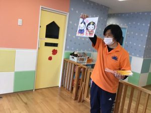 最初は保育士による、スケッチブックシアターでひな祭りの由来やお話しを聞きました。