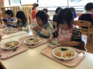 ひな祭り会の後はみんな大好き給食の時間⏰!