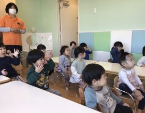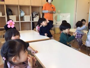 指で作ったわっかを覗くと、「見えた!」と絵本と同じ動作をしてみんな楽しそうでした。
