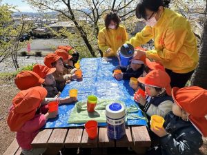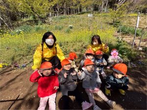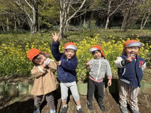 その後は、菜の花の前でクラスごとに写真を撮りました。