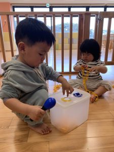 園のオモチャでも、進んで触ってみたり遊んでいく姿が見られましたよ。
