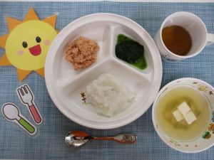 みんな、お魚も大好きで進んで食べていました。新入園児さんは、少しずつ保育園の給食に慣れてみんなで食べる楽しさを知っていけたら良いですね♪
