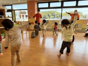 初めて参加する子も、音楽を聞くと体を揺らしたり、他のお友達の様子を見て笑ったり😊