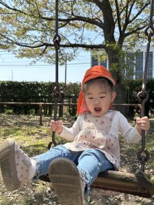 しっかりとブランコを握って、自分で もうこげちゃいます。