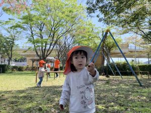 桜や落ちてる葉っぱを触ったり、集めたりするのも楽しいね😊