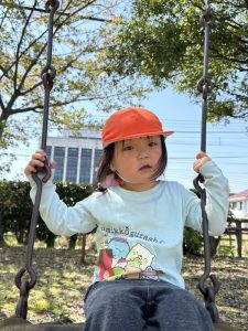 しっかりとブランコを握って、自分で もうこげちゃいます。