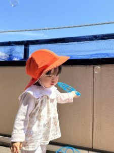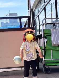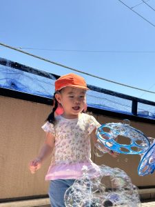 この日はお天気が良かったのでみんなでテラスに出てシャボン玉やボールで遊びました☺️