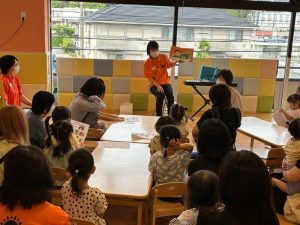 パパとママと一緒にお帰りの会…ドッツカードやフラッシュカード、手遊びや絵本の読み合わせをしてお帰りの歌を歌いました。
