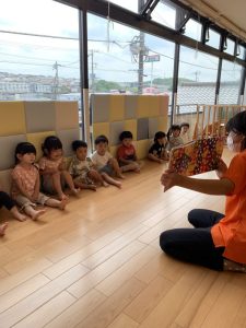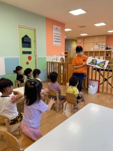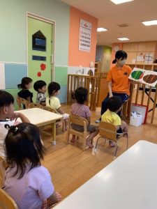 子ども達はあおむしの成長やおいしそうな食べ物をワクワクと見守り、最後蝶々になると「タッチ!」と言って、蝶々が自分の所に飛んで来るよう保育士に声をかけてきます😊