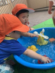 初めは水が掛かると泣いてしまったお友達も、いつの間にか全然平気になっていましたね😊