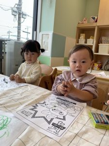 まだドキドキの様子だけれど、一緒におやつを食べたり、塗り絵をしたり、カリキュラムに参加したりと、だんだん笑顔をたくさん見せてくれるようになりました😊