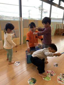 ユラユラ揺れる釣り針(マグネット)で、狙いを定めるのはなかなか難しい…💦