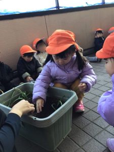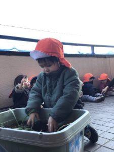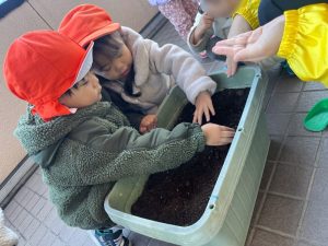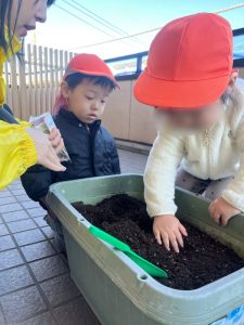 先生の説明を良く聞いて、ぱらぱらと種を蒔き、土を被せてあげることが出来ました!