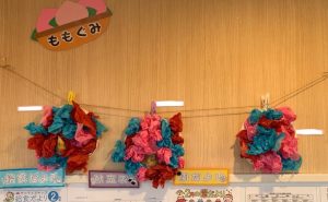 最後には、豆に見立てた新聞紙豆を「まめまき」の歌に合わせて撒きました。