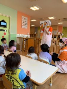 お話の中でお兄ちゃんがおにぎりを作る様子を、みんな真剣に見入っていました。