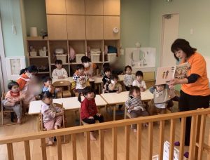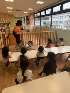 保育園のお友だちも、親しみのある動物たちが次々とあかちゃんと過ごす姿を興味深そうにじーっと見入っていました。