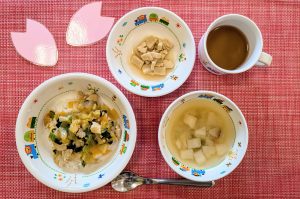 サンライズキッズ保育園 ◎給食の様子 新年度が始まり、みんな給食にも慣れてきました♪自分でしっかりと...