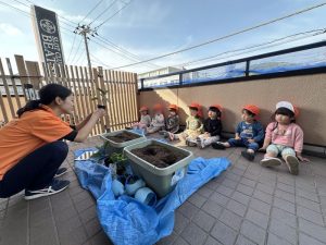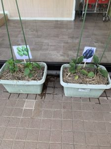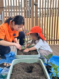 植栽活動の一環で、園のプランターに野菜を植えました。