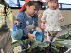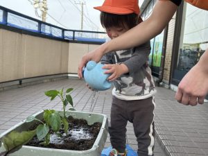 「大きくなあれ」最後にお水をたっぷりかけてあげました。