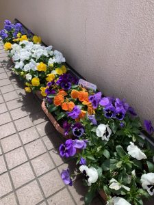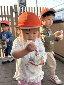 その後、同じくプランターで育てているパンジーの花びらを使って色水遊びをしました😊