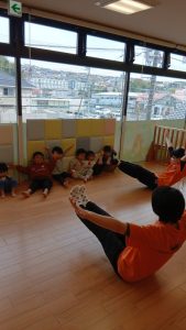 その後、方足立ち等、身体のバランスをつける動きにもチャレンジしています。