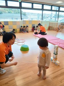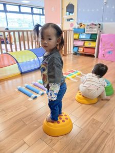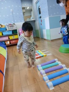 バランス力の向上や、自分で自分の身体を支える体力作りを遊びながら行なっています✨