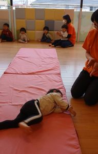 今まで取り組んでいたクマ歩きやで、腕で身体を支える練習をしてきました。