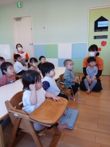 「はらぺこあおむし」という絵本や、手遊びなどで、いもむしやちょうちょに親しんでいるお友だち。