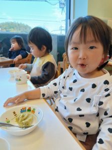 その後の保育士の「これな~んだ?」のスケッチブックシアターでは、元気よく「ライオン!」や「アンパンマン!」と大きな声で答えてくれました。