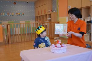 お誕生児インタビューでは、答えるのにちょっとドキドキしてしまったお友だち。