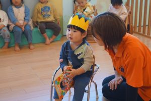 11月のお誕生児は冠をかぶり、バーステーカードを受け取りました。