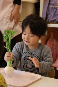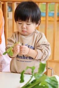 葉っぱの先や根っこの先を持つお友だちや、カブの実をしっかり持ってたくさん色をつけるお友だちもいましたよ😊