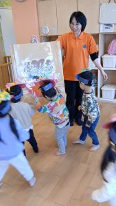 最初に「節分ってなに?」「鬼はどんなものが嫌いなの?」「豆まきの時の掛け声は?」等の話を子ども達へ伝えました。