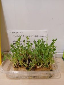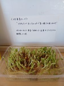食育活動の一環で、豆苗に触れました。