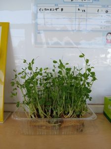 どんどんと伸びてくる豆苗。「大きくなったねぇ」と子どもたち。