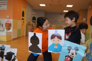ひなまつりについてのお話をみんなで聞いた後は、絵合わせカルタで遊びました♪
