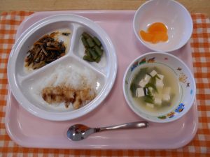 ★幼児食 ・ごはん ・みそ汁 ・照り焼きチキン ・野菜炒め