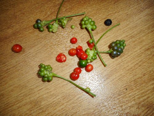 この頃は、植物にいろとりどりの実がなっていることを発見した子どもたちは真剣なまなざしで、植物の実を取っています。