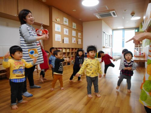 子どもたちのリクエストで、「できるかな?」「えび!かに」