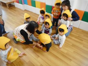 今回は、地震を想定して避難訓練をしました。 「地震だ!揺れてるよ。先生の所にあつまれー...