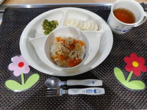 【離乳食】 ・中華丼 ・きゅうりのあえもの ・バナナ 【乳児食】 ・カレーライス ・きゅうりのあえも...