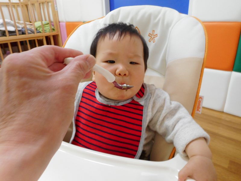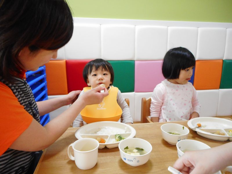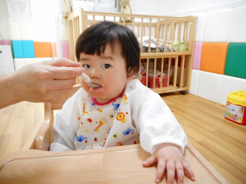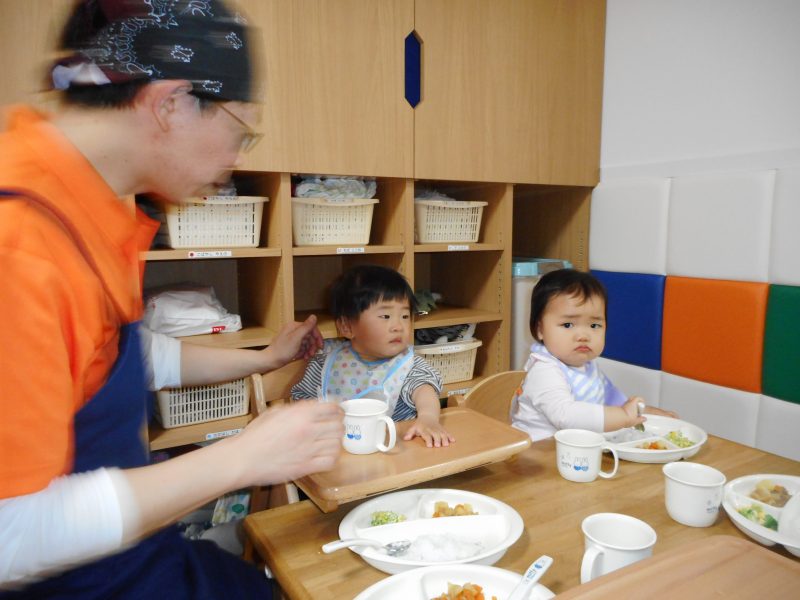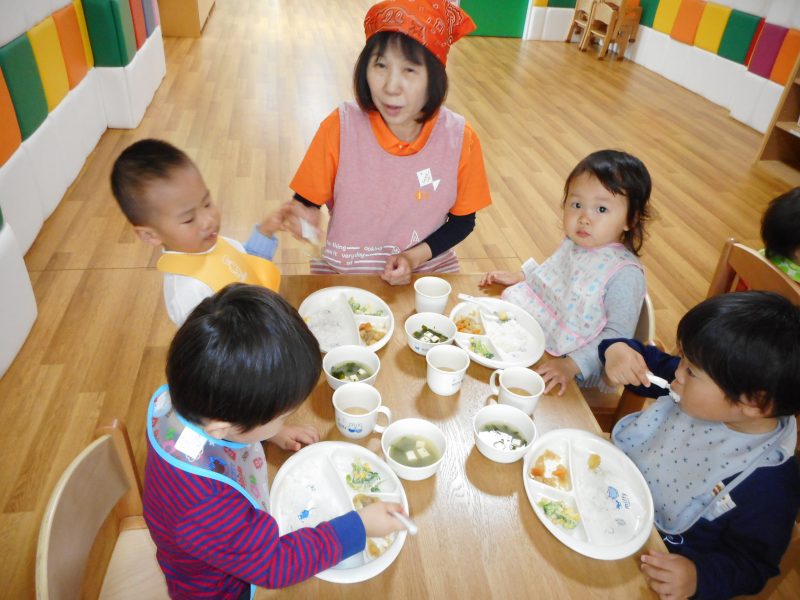 泣いていたお子様も給食を見て泣きやみ、おいしそうに食べていました。