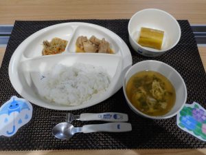・ご飯 ・ツナとじゃがいもの煮物 ・ささみのピカタ ・もずくスープ ・パイン缶 ※0歳児にはパイン缶...