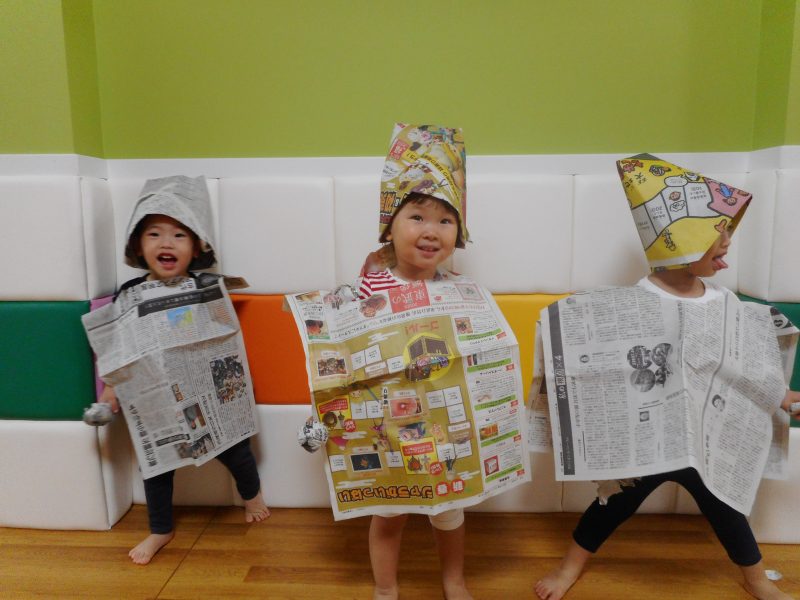 この後皆でしっかりと片付けもでき、集めた新聞紙で大きなボールを作ってボーリングをして終わりました。片付けも遊びにするとお子さんも楽しく片付けができますよね。
