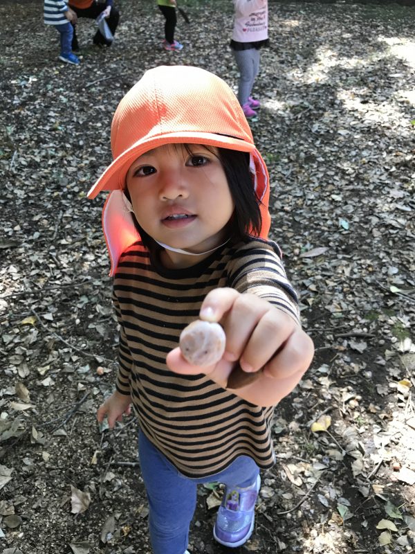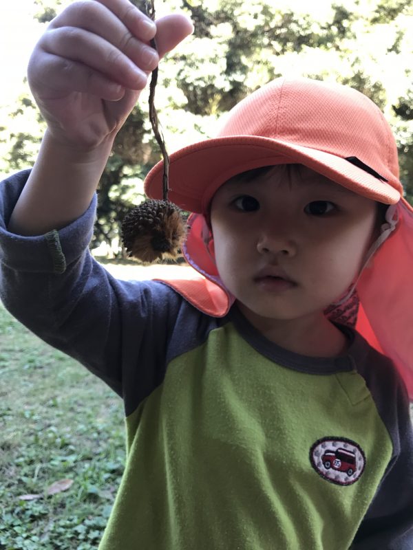 今週の月曜日、「あきらしいことしたいねー」と話していると、ある保育士から保育園の近くにある「どんぐりスポット」の情報をゲットしました![]()