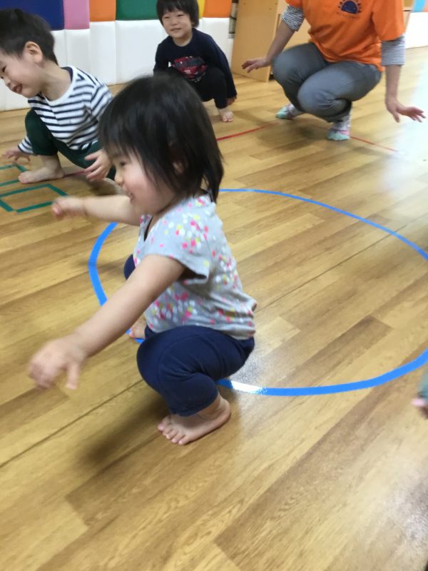以前お伝えした際には保育士が主体となって子ども達はマネして動いている子が多かったのですが、最近は違います