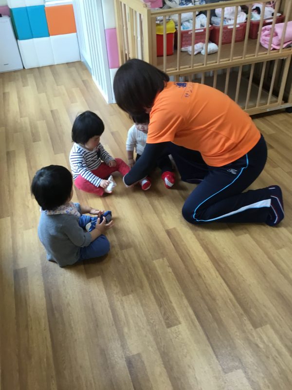 かわいらしいですよねみんなできるようになってきて楽しく靴下がはけていますね