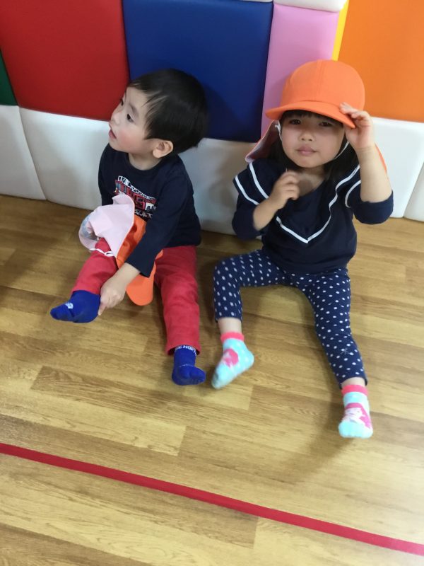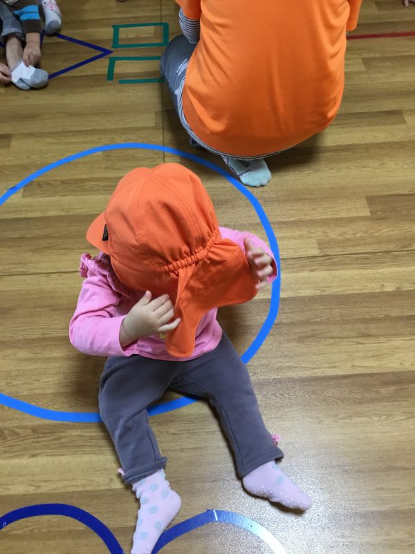 次は1.2歳さんです靴下をはくのはお手の物なので、帽子をかぶっているところをご紹介したいと思います