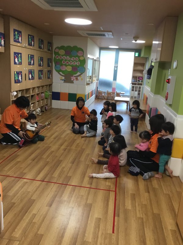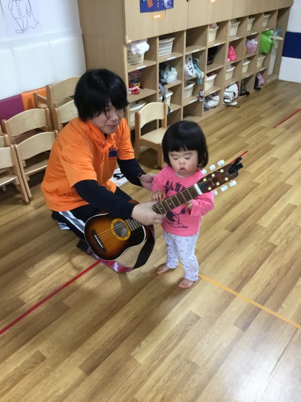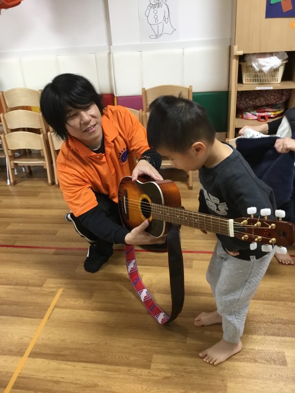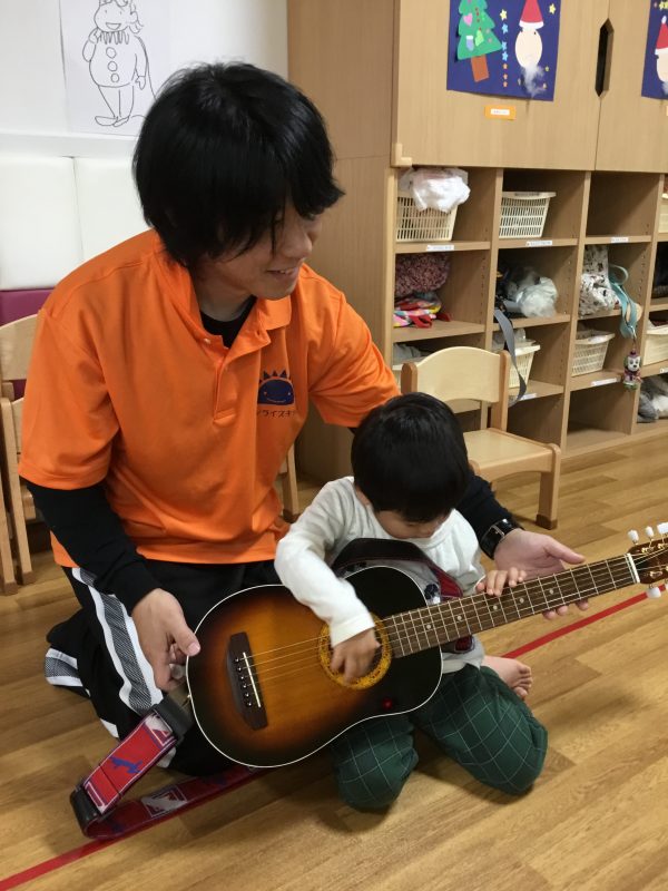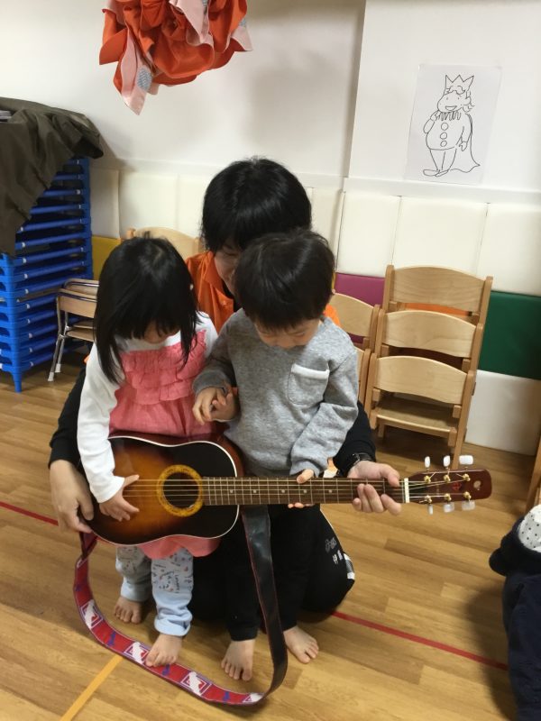 保育園には普段ギターがないので、興味津々でした